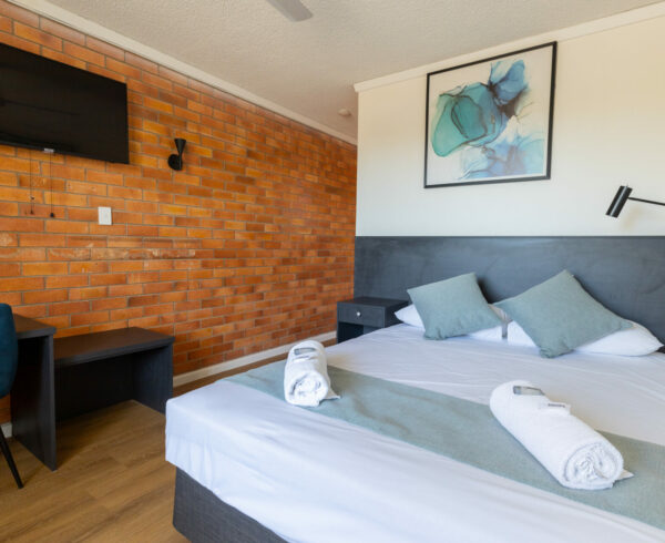 Sleeps two adults, newly renovated room equipped with Queen bed, ensuite, air-conditioning, 40” TV, bar fridge, tea & coffee making facilities, toaster, toiletries, iron facilities, luggage holder & desk.